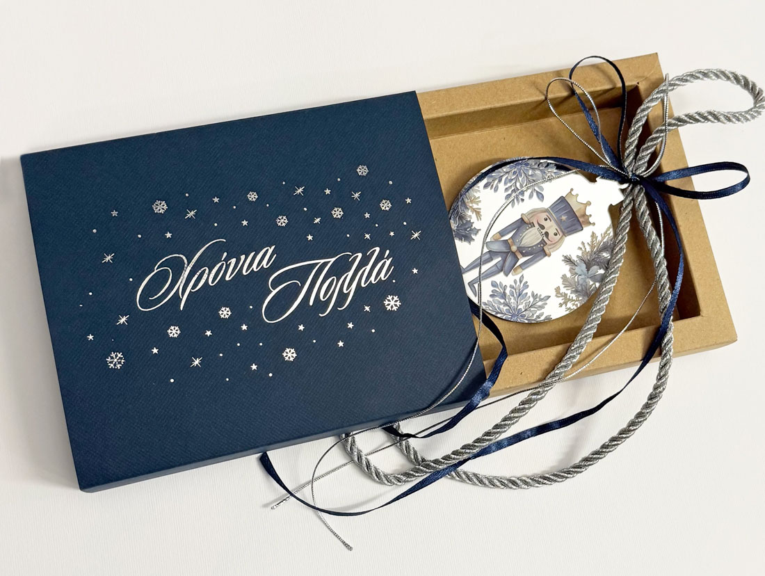 Προαιρετικά συνοδεύεται από κουτί διαστάσεων 13Χ16 εκτυπωμένο με ασημοτυπία.