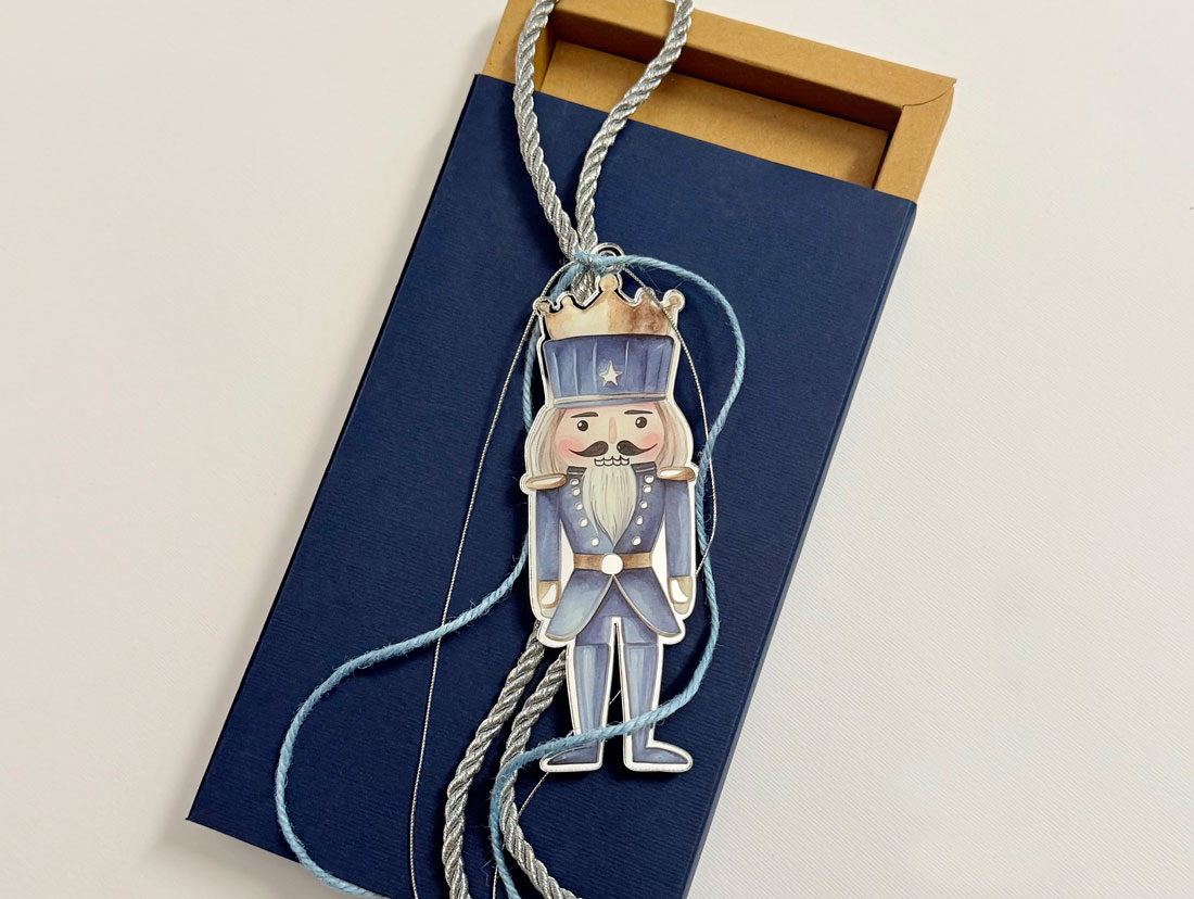 Γούρι “καρυοθραύστης” εκτυπωμένο σε ασημί plexiglass καθρέφτη, με δυνατότητα αλλαγής μεγέθους.