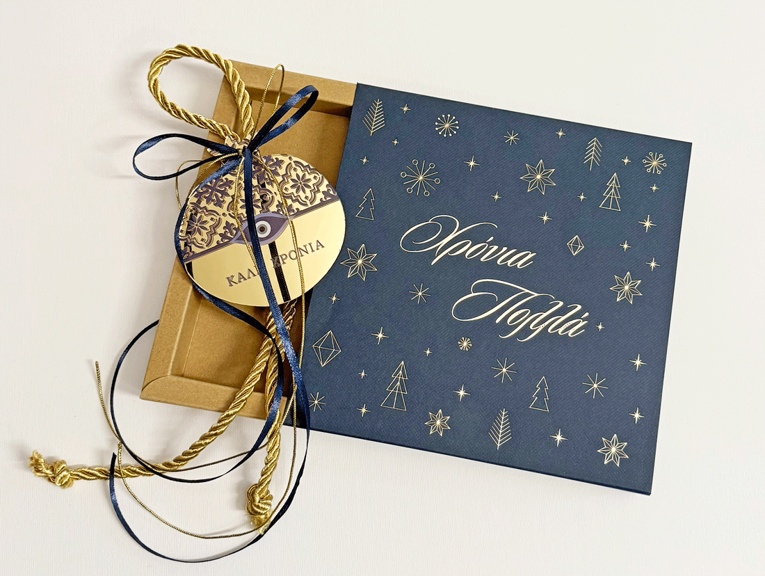 Προαιρετικά συνοδεύεται από κουτί διαστάσεων 17Χ17 εκτυπωμένο με χρυσοτυπία.