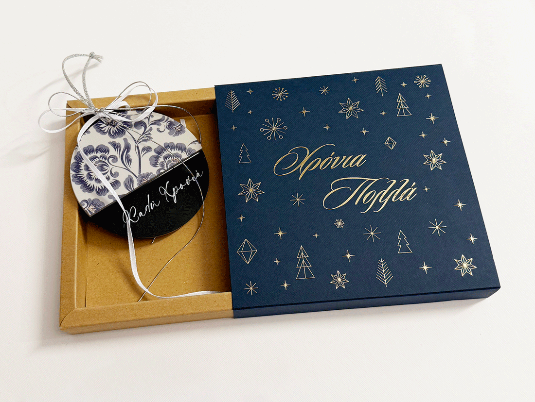 Προαιρετικά συνοδεύεται από κουτί διαστάσεων 17Χ17 εκτυπωμένο με χρυσοτυπία.