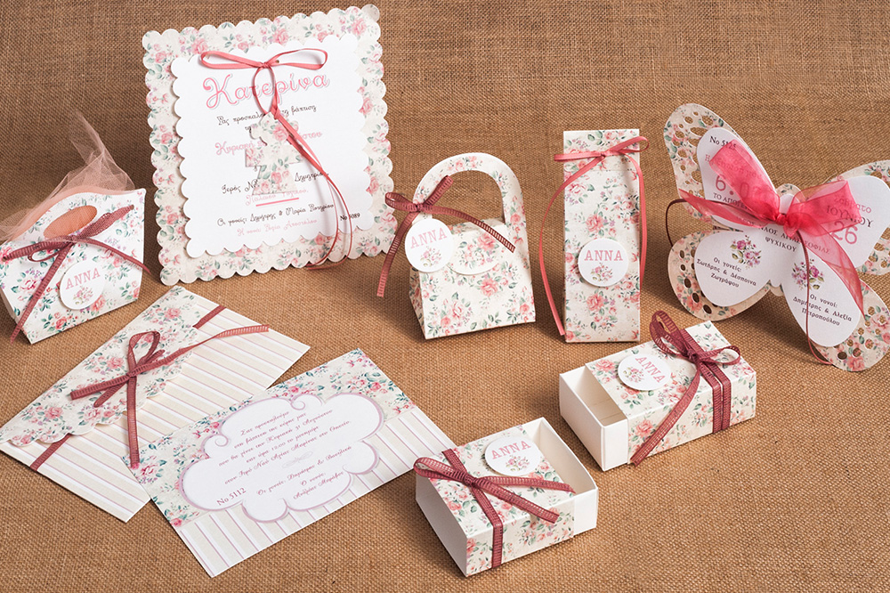 Μπομπονιέρα Βάπτισης Old Rose Λουλουδάκια