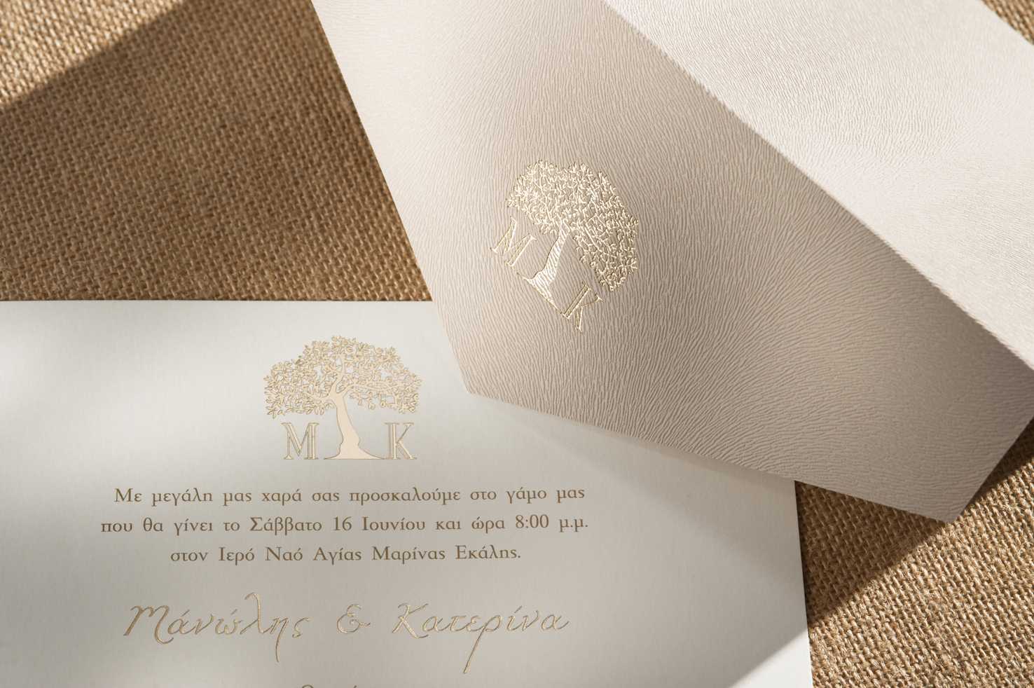 Φάκελος: Θερμοτυπία χρυσο foil Στεφάνι με Μονογράμματα